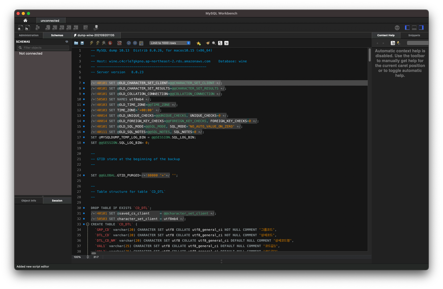 그럼 아래와 같이 데이터베이스를 이관하는 SQL문이 생성됩니다.