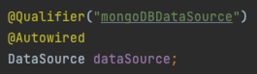 DataSource라는 인터페이스를 구현하는 MongoDBDataSource 클래스를 작성하고, Bean으로 등록해서 Bean Container에 담아두고, @Autowired 어노테이션으로 주입받아 사용하면 됩니다.