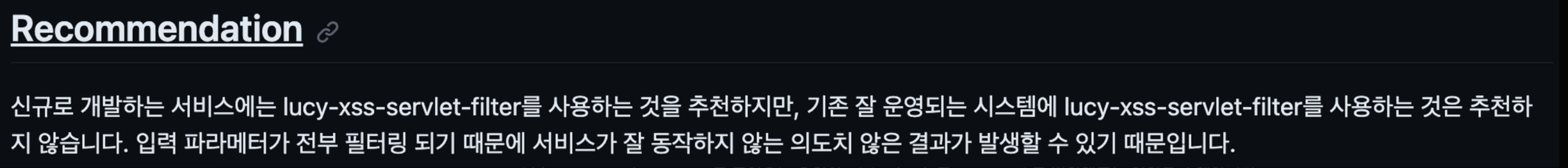 하지만 lucy-xss-filter는 아래와 같은 한계점으로 사용하지 않았습니다.