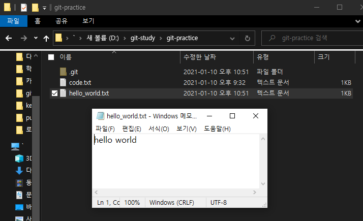 그럼 이제 hello_world.txt를 수정해 보겠습니다.