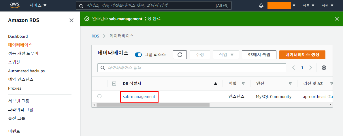 먼저, AWS에 접속해 데이터베이스에 대한 정보를 알아봅시다.