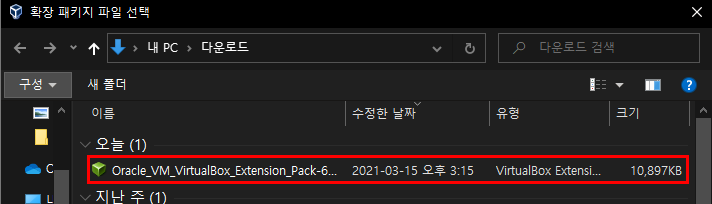 Virtual Box의 설치가 끝나면 아까 다운로드한 확장팩을 설치해 주겠습니다.
