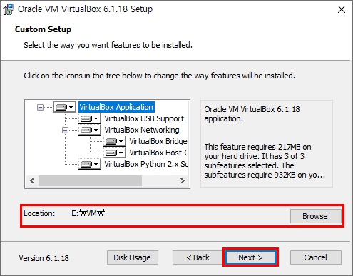 기본 옵션대로 설치해도 되지만, 저는 C드라이브의 용량이 부족하기 때문에 E드라이브의 VM이라는 폴더 아래에 설치해 주었습니다.