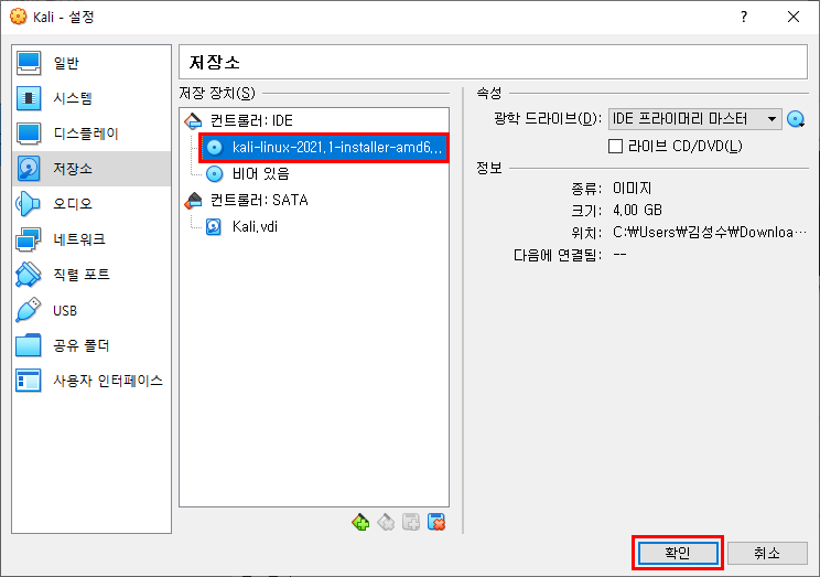해당 Kali Linux를 사전에 설치한 Oracle Virtual Box에 설치해 주겠습니다.
