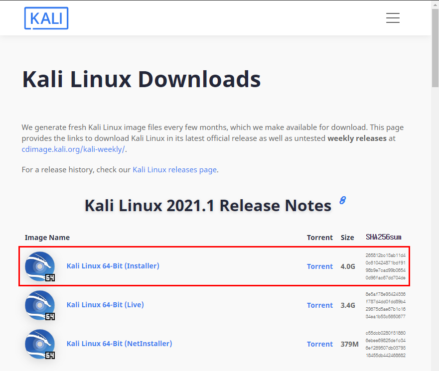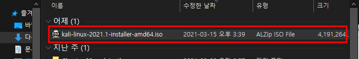 Kali Linux를 설치하기 위해 다음 링크에서 Kali Linux를 다운로드하여 줍니다.
