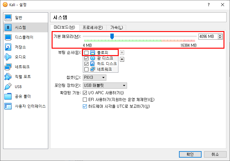 2. 시스템 기본 메모리, 부팅 순서 설정