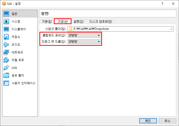 드래그 앤 드롭은, 기존 OS의 파일을 Kali Linux에 드래그 앤 드롭으로 끌어 놓거나, Kali Linux의 파일을 기존 OS에 드래그 앤 드롭으로 옮길 수 있게 해 줍니다.