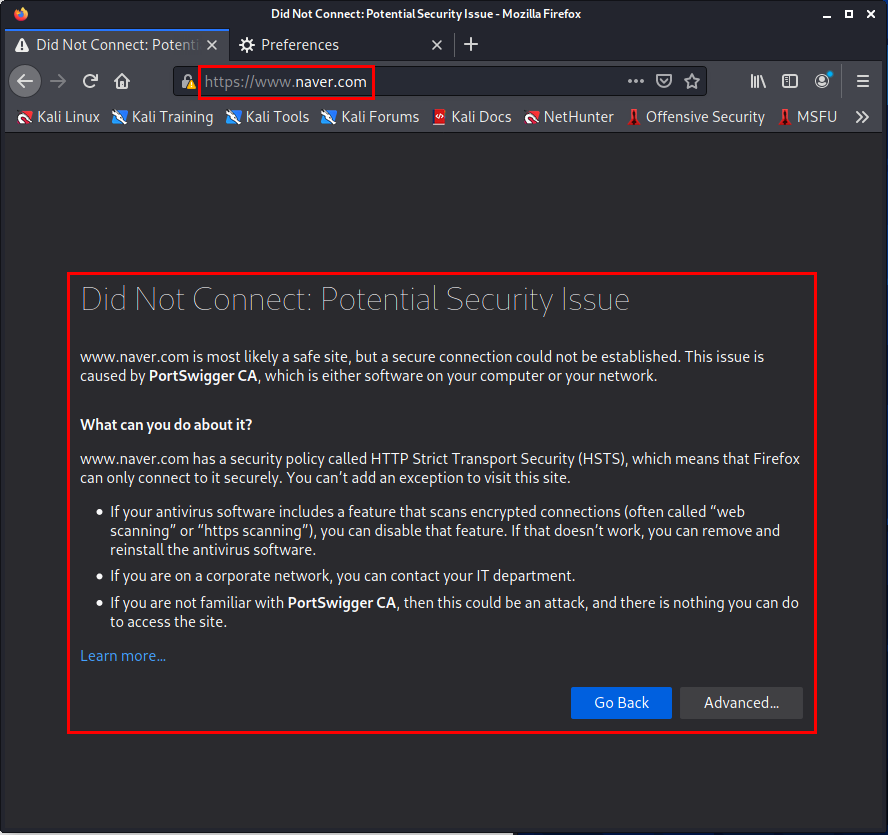 한 가지 주의할 점은, Burpsuite에 대한 기본적인 설정을 모두 완료하고 나서, burpsuite을 끄고, 웹 브라우저로 웹 사이트를 접속하려 하면 접속이 안될 것입니다.