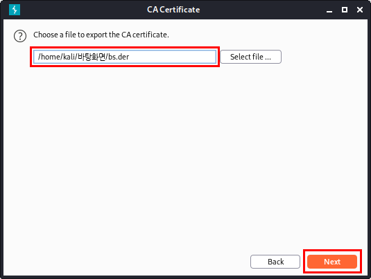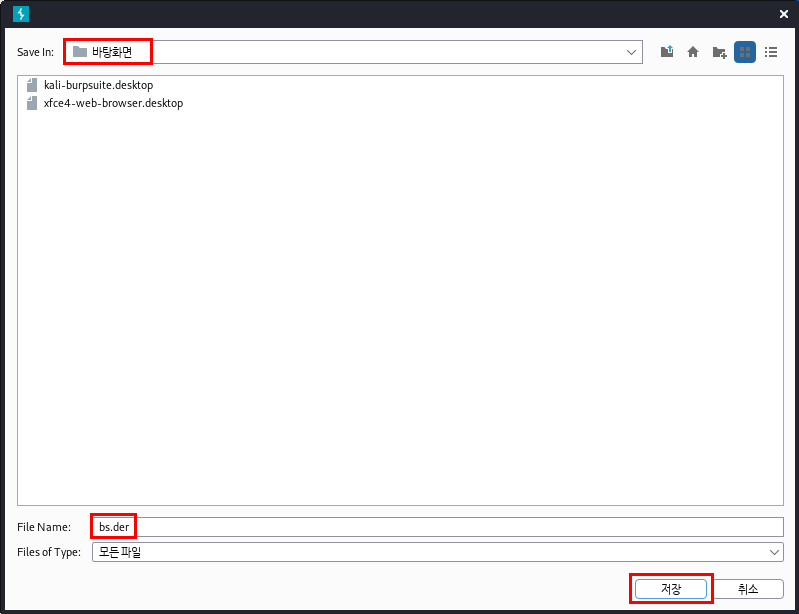 바탕화면에 "bs.der"라는 이름으로 certificate을 export 해줍니다.