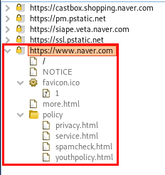 Target옵션에서 네이버 사이트에 대한 구조도 다음과 같이 확인할 수 있습니다.