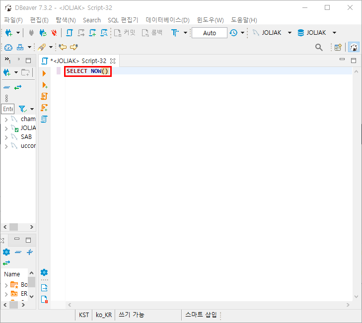 RDS인스턴스의 재부팅이 완료되고 다시 DB툴로 돌아와 SELECT NOW(); 쿼리문을 실행해보겠습니다.