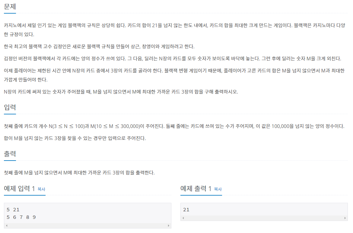 2798번: 블랙잭