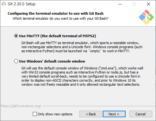 Linux 명령어가 익숙하신 분들은 리눅스 베이스 터미널용 Git Bash 프로그램을 사용하시면 됩니다.