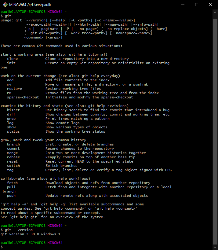 Git이 정상적으로 설치된 지 확인해 보겠습니다.