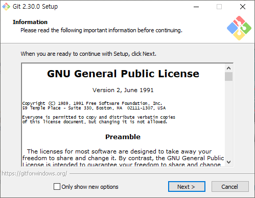 아까 다운로드한 2.30.0 for Windows 버전이 잘 설치되어있는 것을 확인했습니다.
