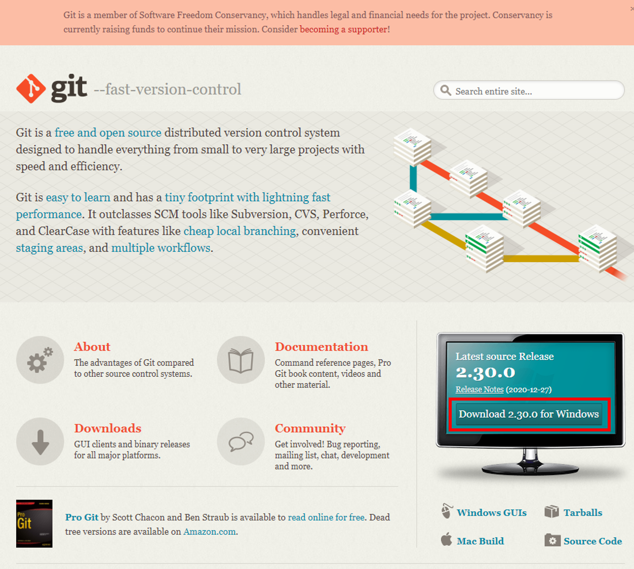 우선, Git홈페이지에 들어가 설치 프로그램을 받아주세요.