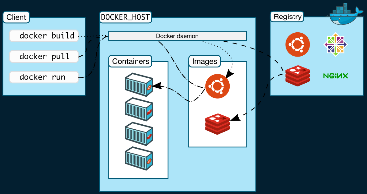 Docker는 기본적으로 server-client 아키텍처를 사용합니다.