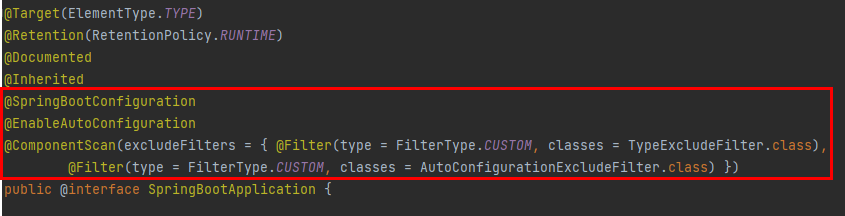 @SpringBootApplication을 자세히 들여다보면 다음과 같은 코드를 확인할 수 있습니다.