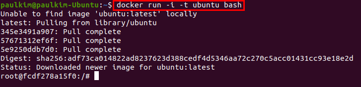 $ docker run -i -t ubuntu bash
