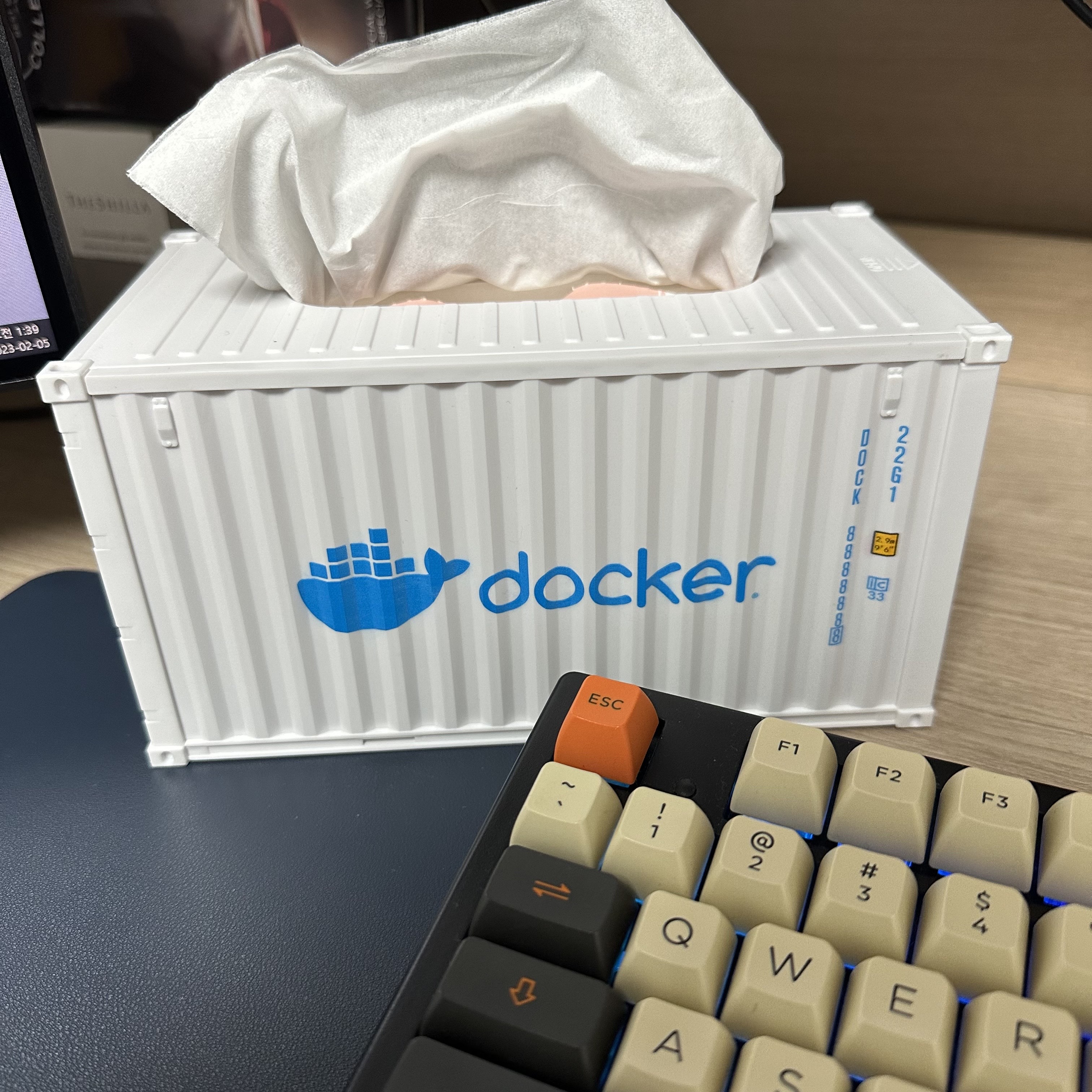 다름 아닌 도커 휴지케이스인데요! 도커 컨테이너라는 이름과 어울리게 컨테이너 모양의 휴지 케이스입니다.