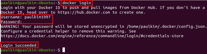 먼저 docker hub에 업로드하기 위해 $ docker login 명령어를 통해 로그인을 해줍니다.