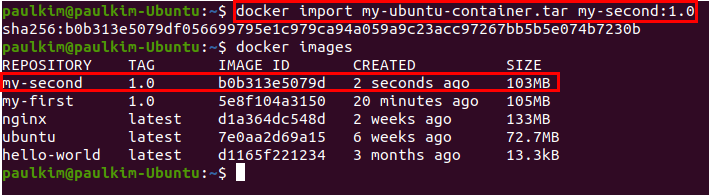 import : tar파일로부터 컨테이너의 파일 시스템을 로드합니다.