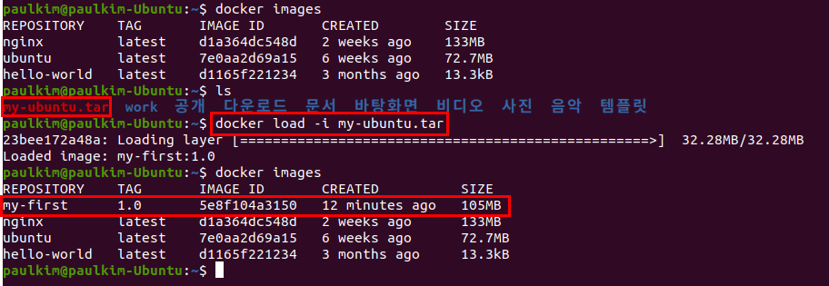load : tar 파일로부터 이미지를 로드합니다.