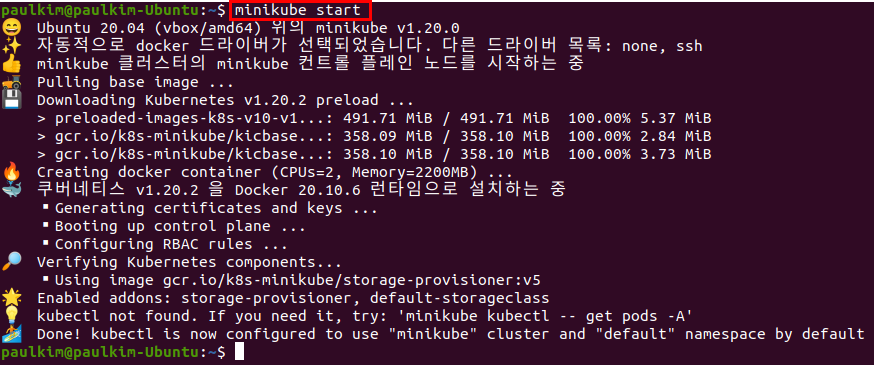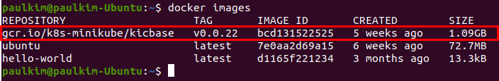 $ docker images 명령어를 입력하면 minikube 이미지 파일을 확인할 수 있습니다.