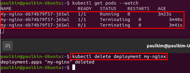 그럼 다음 명령어를 통해 pod를 관찰하고 삭제해보겠습니다.