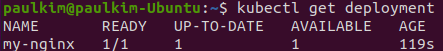 $ kubectl get deployment 명령어를 통해 deployment 리스트를 출력하면 방금 생성한 my-nginx deployment를 볼 수 있습니다.