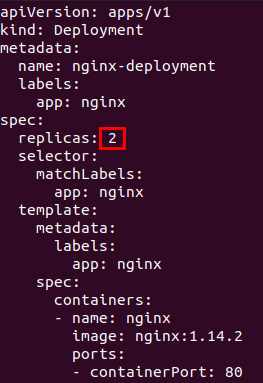 그럼 해당 depolyment를 만들기 위해 사용한 nginx.yaml파일을 다음과 같이 replicaset의 개수를 2로 늘려 다시 apply 해보겠습니다.