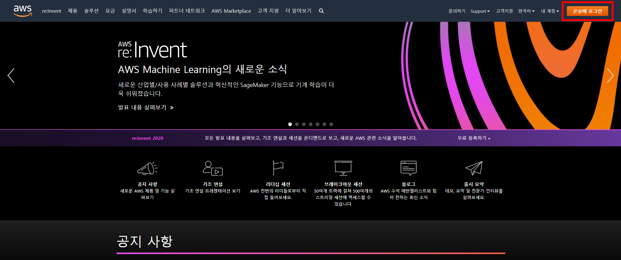 다음 링크를 통해 Amazon Web Services에 접속할 수 있습니다.