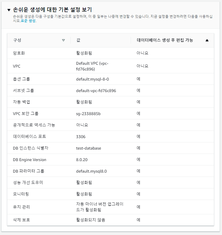 DB 식별자 부분에 저희가 이름 지어준 "test-database"를 클릭해 보겠습니다.